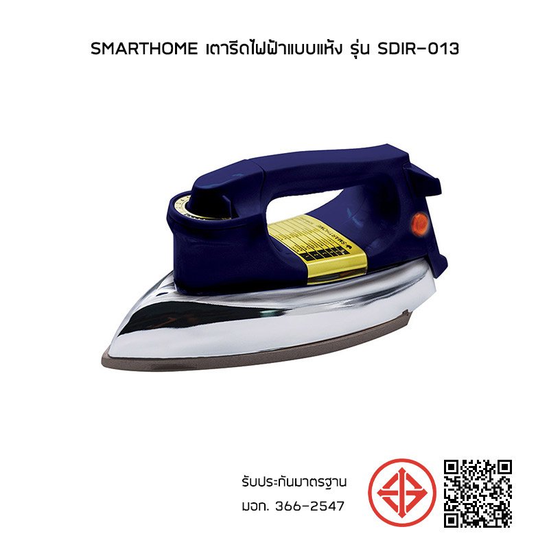 SMARTHOME เตารีดไฟฟ้าแบบแห้งมีเทอร์มอสแตต รุ่น SDIR-013ใช้สำหรับรีดผ้า ด้วยกำลังไฟฟ้า 1000W รีดลื่นไม่ติดผ้าด้วยหน้าเตาอลูมิเนียมปรับระดับความร้อนได้ถึง 6 ระดับ อุณภูมิหน้าเตาสูงสุด 180-230 องศาเซลเซียสพร้อมไฟแสดงการทำงาน ใช้งานง่ายเหมาะกับทุกเนื้อผ้า ขจัดรอยยับอย่างมีประสิทธิภาพให้ความร้อนสม่ำเสมอ มั่นใจในความปลอดภัยได้รับการรับรองมาตรฐานผลิตภัณฑ์อุตสาหกรรม