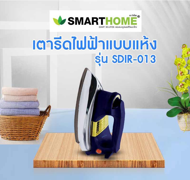 SMARTHOME เตารีดไฟฟ้าแบบแห้งมีเทอร์มอสแตต รุ่น SDIR-013ใช้สำหรับรีดผ้า ด้วยกำลังไฟฟ้า 1000W รีดลื่นไม่ติดผ้าด้วยหน้าเตาอลูมิเนียมปรับระดับความร้อนได้ถึง 6 ระดับ อุณภูมิหน้าเตาสูงสุด 180-230 องศาเซลเซียสพร้อมไฟแสดงการทำงาน ใช้งานง่ายเหมาะกับทุกเนื้อผ้า ขจัดรอยยับอย่างมีประสิทธิภาพให้ความร้อนสม่ำเสมอ มั่นใจในความปลอดภัยได้รับการรับรองมาตรฐานผลิตภัณฑ์อุตสาหกรรม