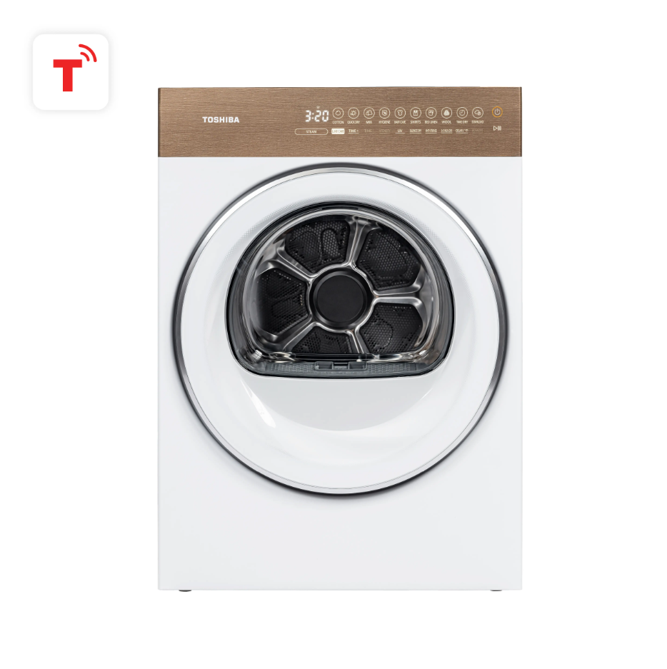 อบและถนอมเนื้อผ้าได้อย่างเหนือชั้น ด้วยเครื่องอบผ้าฝาหน้าจากแบรนด์ TOSHIBA มาพร้อมเทคโนโลยี Heat Pump ช่วยรักษาอุณหภูมิในการอบที่ต่ำ เพื่อป้องกันการอบผ้าจนแห้งเกินไป และช่วยคงความนุ่มและความสบายของเสื้อผ้า โปรแกรม LUXECARE ไอน้ำพลังงานสูงแทรกซึมลึกเข้าสู่เส้นใย ช่วยขจัดกลิ่นต่างๆ เช่น กลิ่นควัน หรือกลิ่นอาหารได้อย่างมีประสิทธิภาพ คืนความสดชื่น และขจัดรอยยับ,ผสานระบบกรอง 6 ชั้นที่อัพเกรดใหม่ ช่วยกรองขนสัตว์ มลพิษ ฝุ่น และอื่นๆ อีกมากมาย เทคโนโลยี SENSEDRYTM เซ็นเซอร์ตรวจจับความชื้น ให้ผ้าของคุณแห้ง ในอุณหภูมิที่เหมาะสม มี UV SANITIZE ช่วยยับยั้งเชื้อโรคและกลิ่น ที่ติดเสื้อผ้าของคุณ ให้หอมสดชื่น ไร้กลิ่นอับ สวยมินิมอลกับดีไซน์แผงควบคุมลายไม้ ติดตั้งไว้มุมไหนก็ดูสวยงามกลมกลืนกับเฟอร์นิเจอร์ชิ้นอื่นๆ อย่างลงตัว