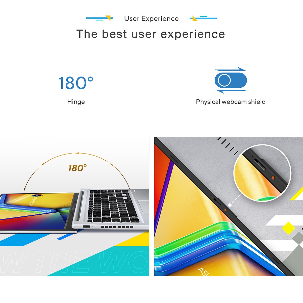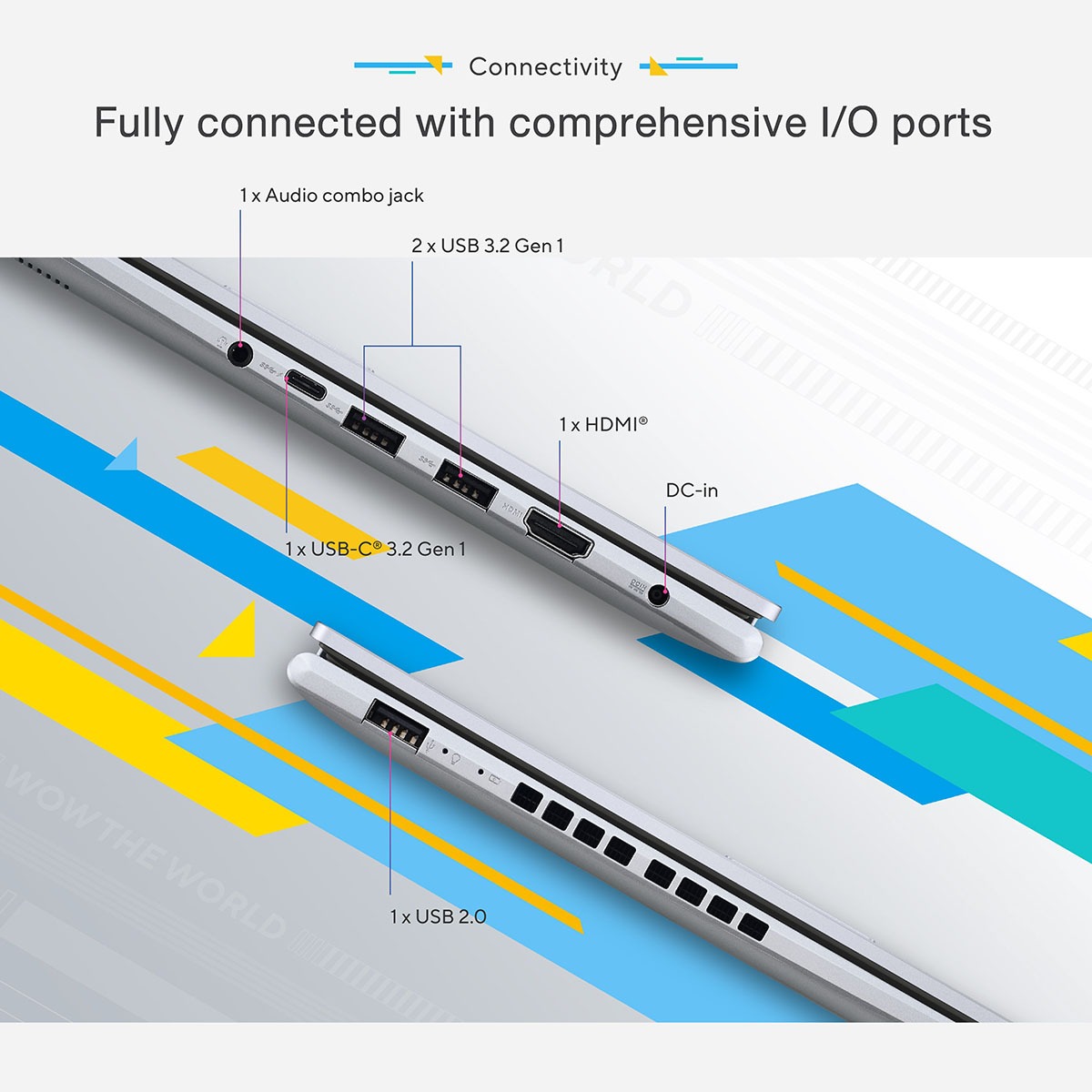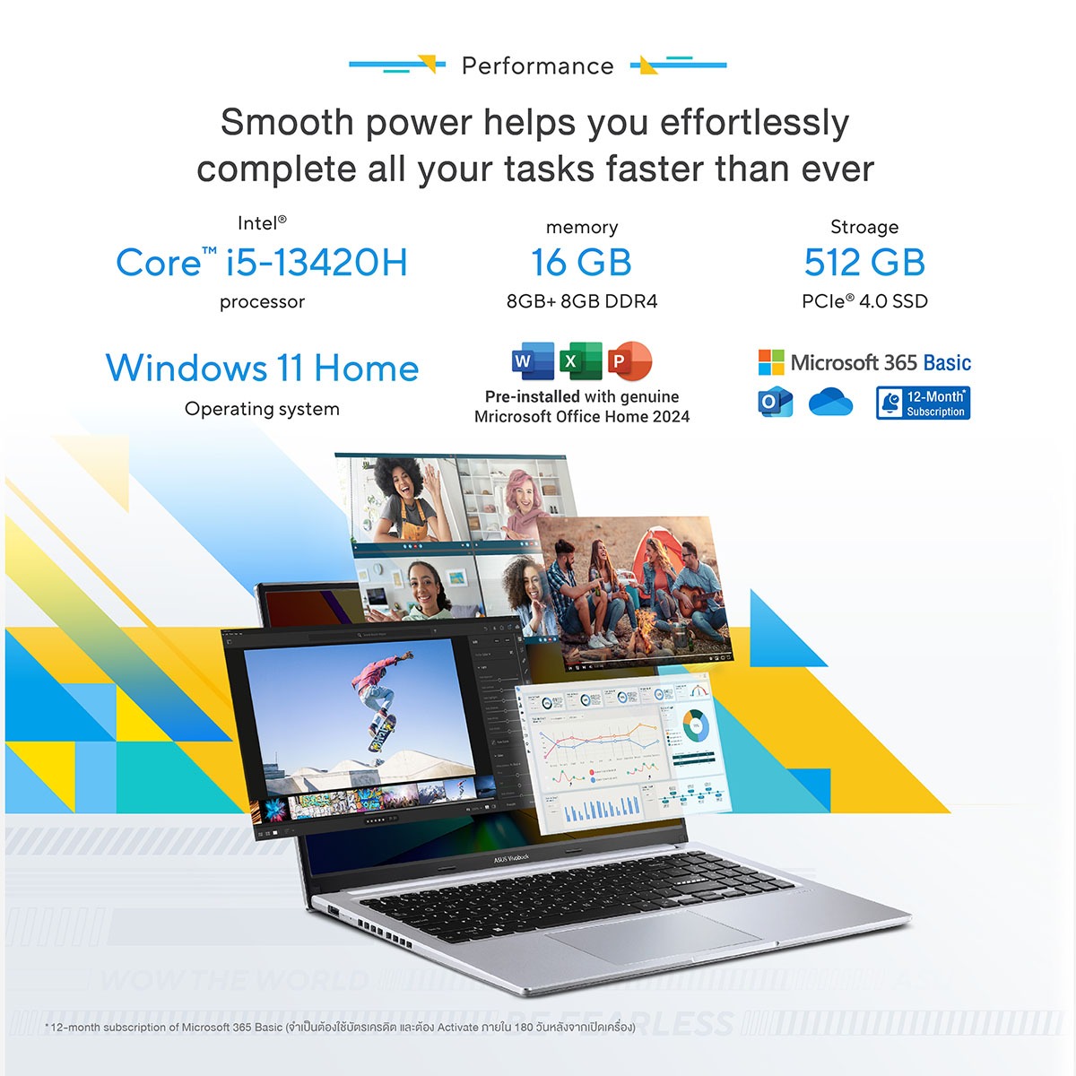 ASUS Vivobook 15 โน้ตบุ๊กที่มาพร้อมคุณสมบัติที่ช่วยให้ทำสิ่งต่างๆ ให้เสร็จสิ้นได้ง่าย มาพร้อมโปรเซสเซอร์ AMD Ryzen 7 7730U อันทรงพลังไปจนถึงจอแสดงผลที่คมชัด บานพับกางได้ 180 องศา