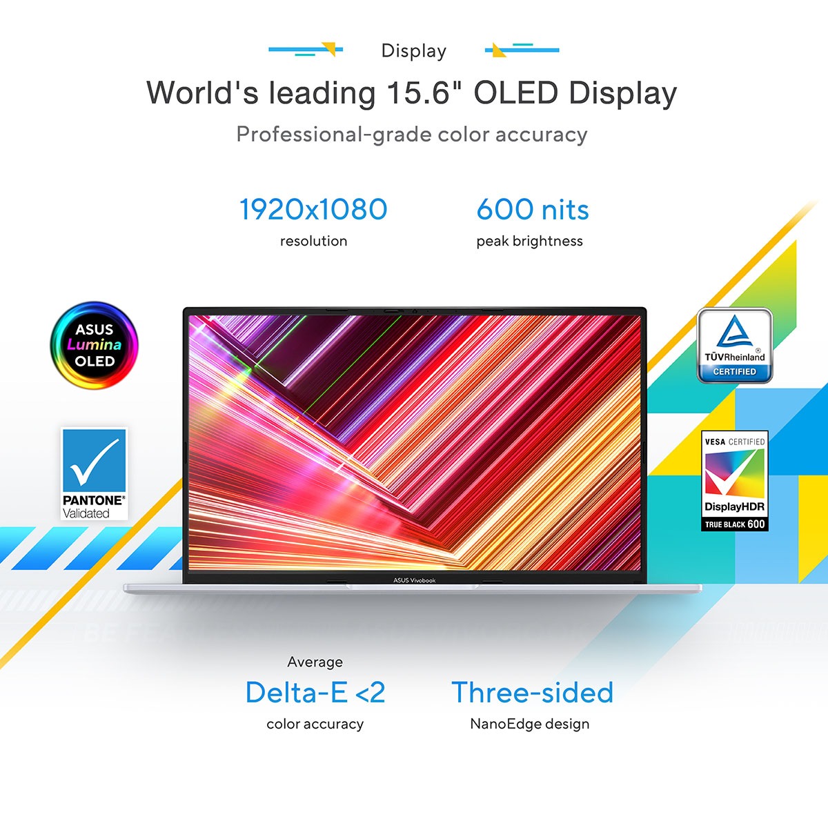 2. หน้าจอ 15.6 นิ้ว OLED ความละเอียด 1920 x 1080 และได้รับการรับรองจาก TÜV Rheinland เรื่องถนอมสายตาจากแสงสีฟ้า
