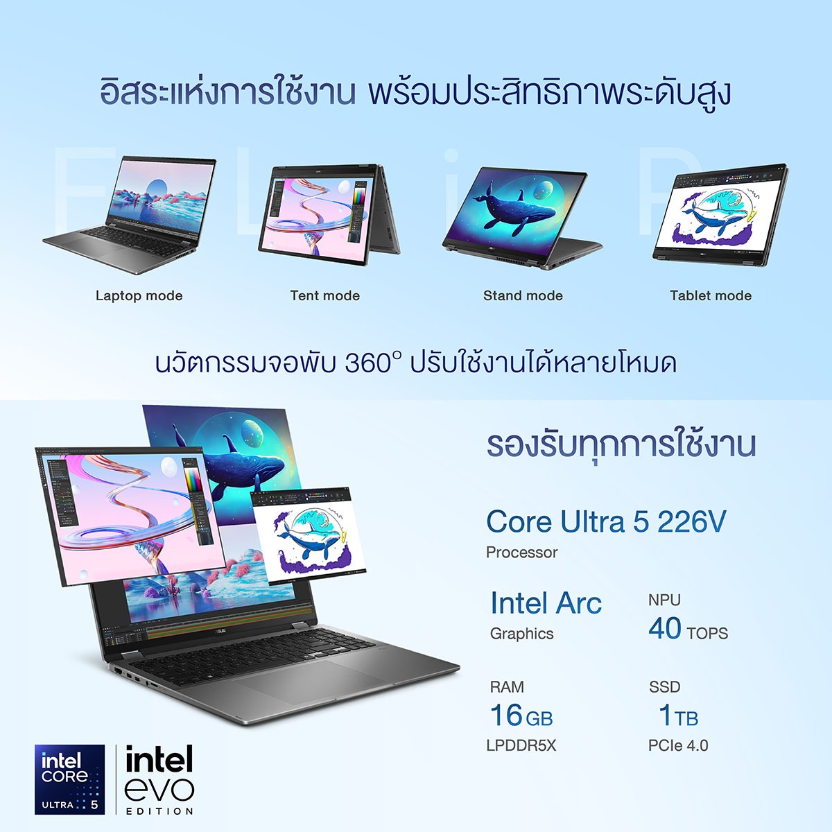 โน้ตบุ๊กหน้าจอ 16 นิ้ว 2-in-1 พับจอได้