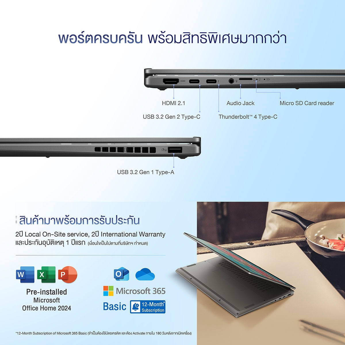 7. มาพร้อม Windows 11 Home , Microsoft Office Home 2024 และ 12-month subscription of Microsoft 365 Basic (จำเป็นต้องใช้บัตรเครดิต และต้อง Activate ภายใน 180 วันหลังจากเปิดเครื่อง)