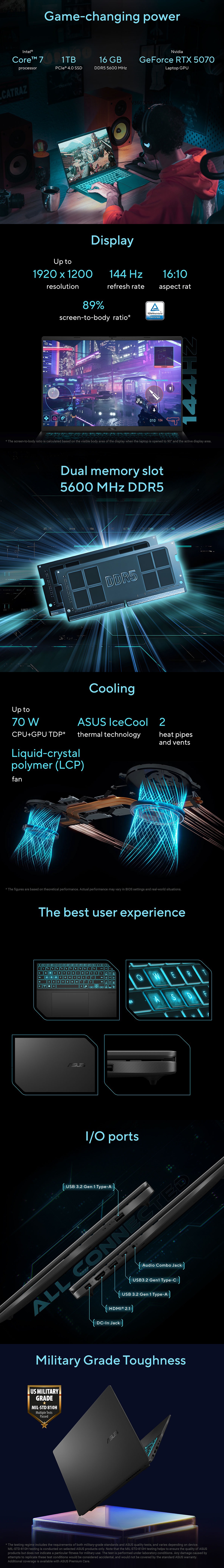 • Graphic Card                                           NVIDIA® GeForce RTX™ 5070 Laptop GPU 8GB GDDR7