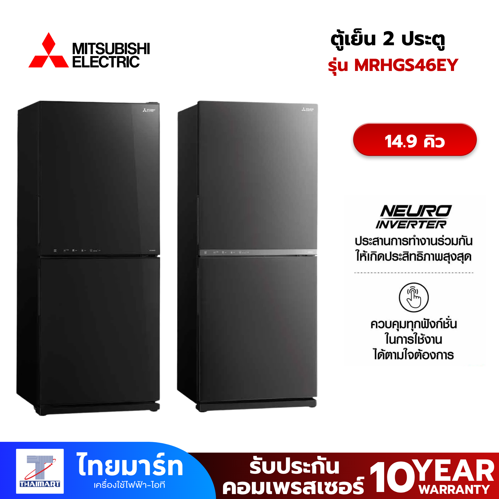 ตู้เย็น 2 ประตู MITSUBISHI MR-HGS46EY-GBK 14.9 คิว กระจกดำ