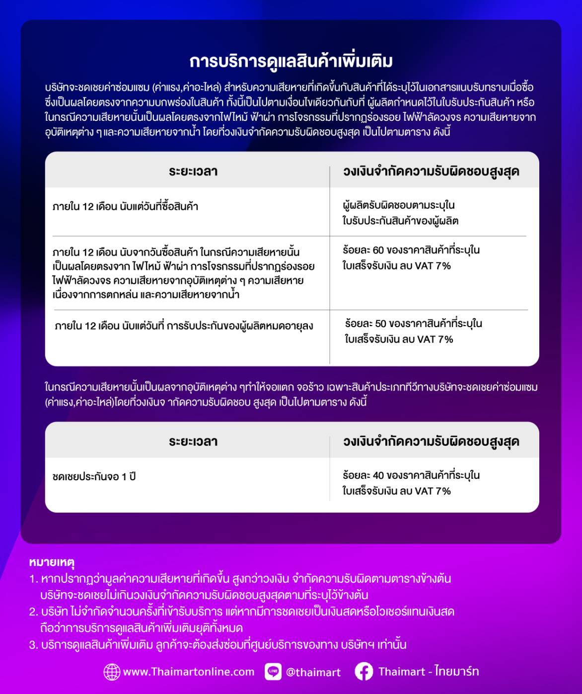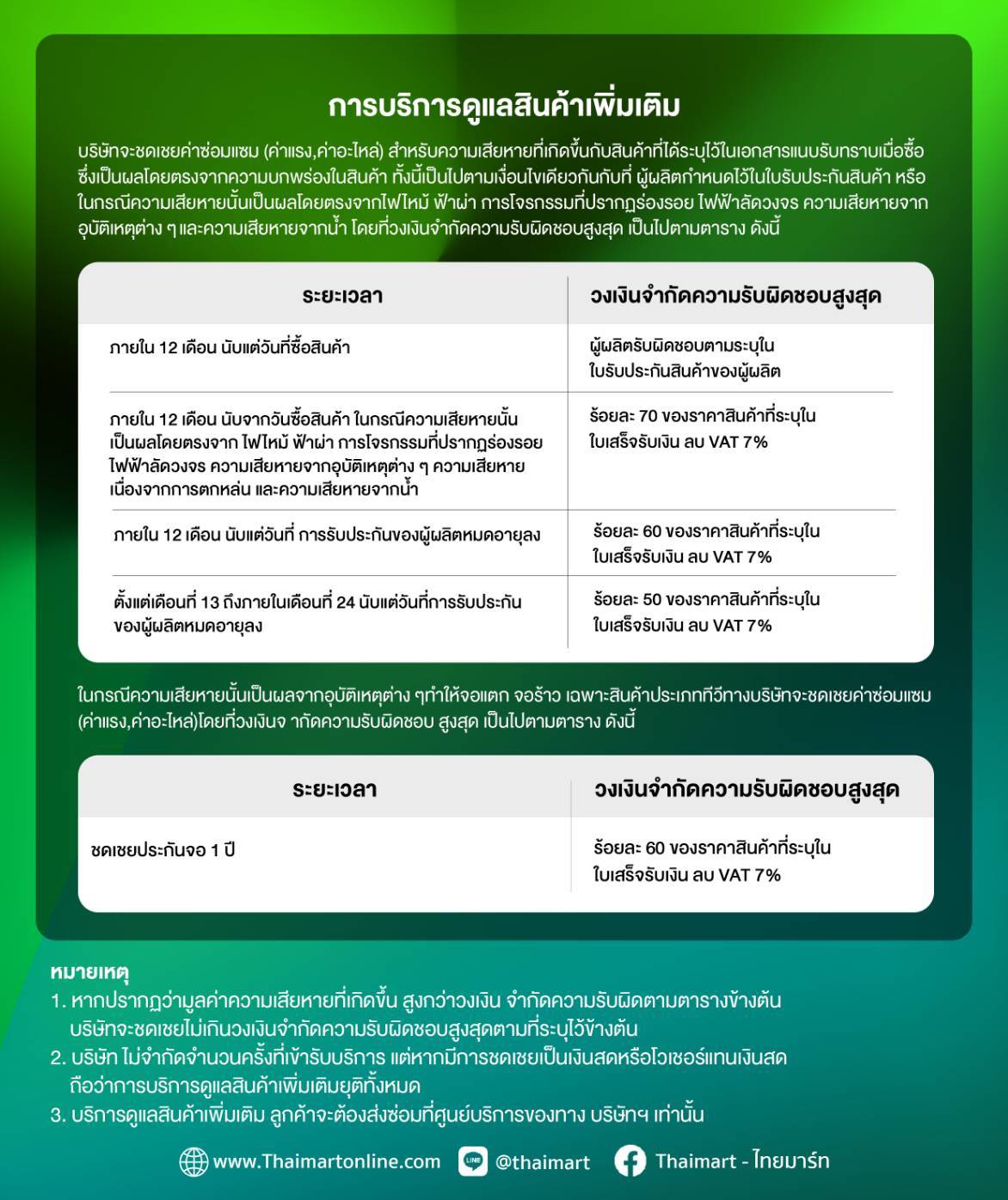 ไทยมาร์ท สมายล์แคร์ พร้อมช่วยคุณดูแลเครื่องใช้ไฟฟ้า ให้คุณหมดกังวลกับทุกปัญหาที่อาจเกิดขึ้น ด้วยแผนความคุ้มครองที่เลือกได้ตามความต้องการ: